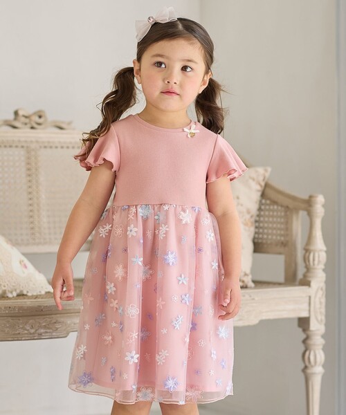キッズ/ワンピース/チュール/お花/刺繍/リボン/ハート/お呼ばれ/発表会/人気/デイリー/女の子/ガール/サスティナブル
