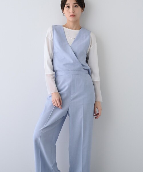 夏らしいリネンライクでドライタッチな素材を使用したカシュクールサロペットです。