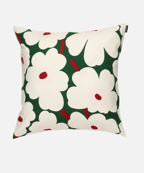 花をモチーフにしたUnikko柄のクッションカバー 50×50cmサイズ。ホワイトとダークグリーンのコントラストがお部屋のアクセントに。サイドファスナー仕様で着脱もスムーズ。手軽にお部屋の模様替えが楽しめるクッションカバーのバリエーションは、何枚あっても嬉しい。