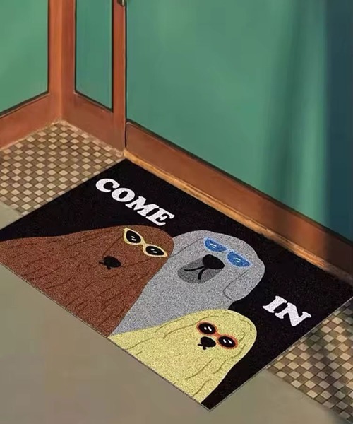 サングラスをかけた犬と猫のデザインがお洒落なマット。