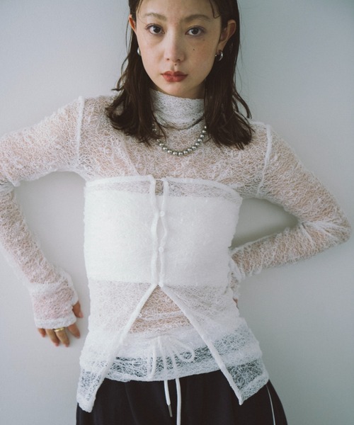 繊細なレース素材を使用し、華奢で女性らしい印象を演出。