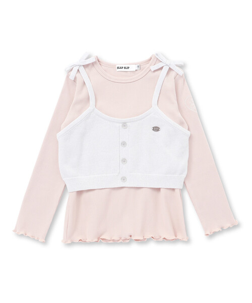 ニットのビスチェと長袖Tシャツの2点セット。