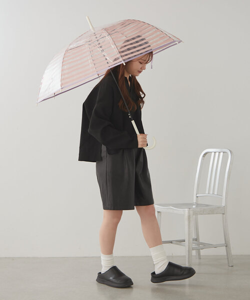 雨の日も気分があがる、おしゃれなビニール傘一見ストライプ柄に見えるビニール傘。