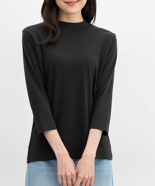 首元を程よく隠すプチハイネックがこなれた印象のシンプルデザイン。