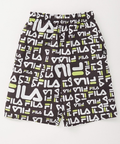 メッシュインナーパンツ一体型の履きやすいサーフパンツウエストは総ゴムにスピンドルも付いているのでサイズ調節も可能。FILAのロゴ総柄が特徴的なデザイン。