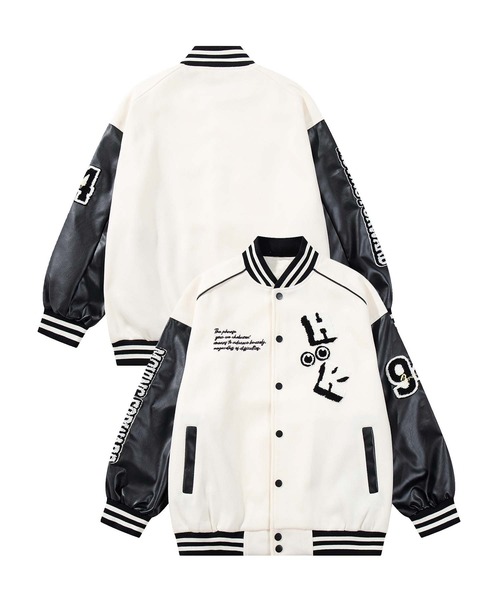 袖はクールなPUレザー素材で切り替え、カジュアルながらも上品な印象に