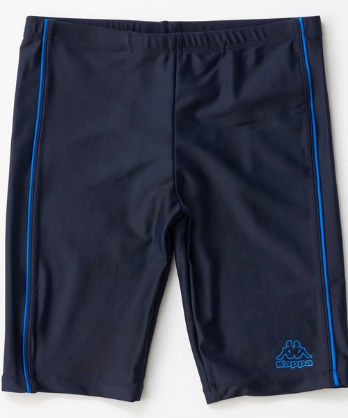 体にフィットして動きやすいロング丈のスイムパンツ脇パイピングでスポーティーなデザイン。ウエストに通っていてるスピンドルは後で縫い止められているので抜けてしまう心配がなく、ウエストの調整が可能です。