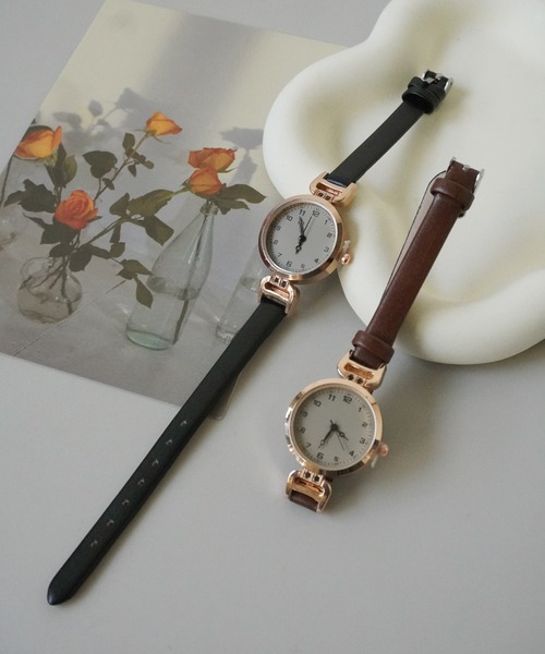 ラウンド型フェイス×シックなフェイクレザーベルトが大人っぽい腕時計。