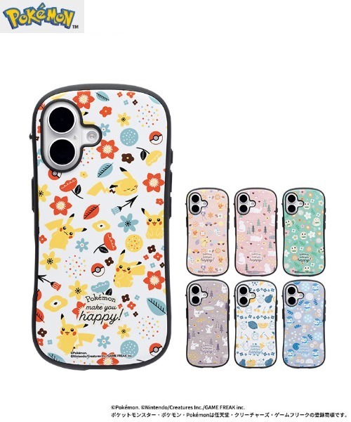 「ピカチュウ」、「コダック」、「ヤドン」、「ポッチャマ」、「モクロー」、「ミミッキュ」などポケモンたちが集まった大人かわいい北欧デザインのiFace First Class。