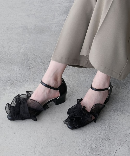 コーデのアクセントにぴったりなシアーフリルパンプス。