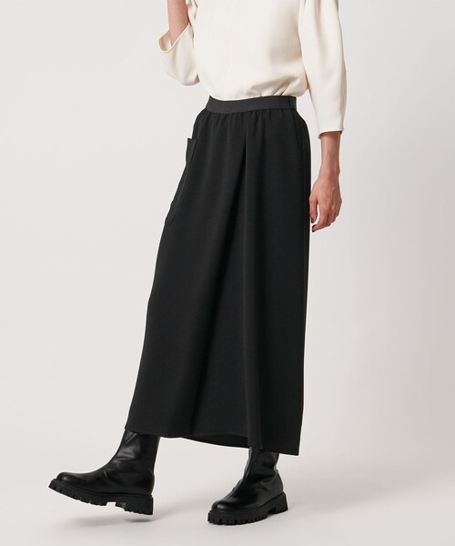 ラップ風のフロントタックが立体感な美しいフォルムを作るタイトスカート。