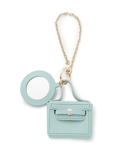 ミニマムサイズのハンドバッグにラウンドミラーをセットしたバッグチャーム。
