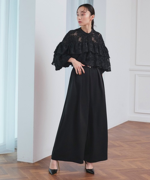 シアーカットジャカードの2段フリルが軽やかでフェミニンなパンツドレス