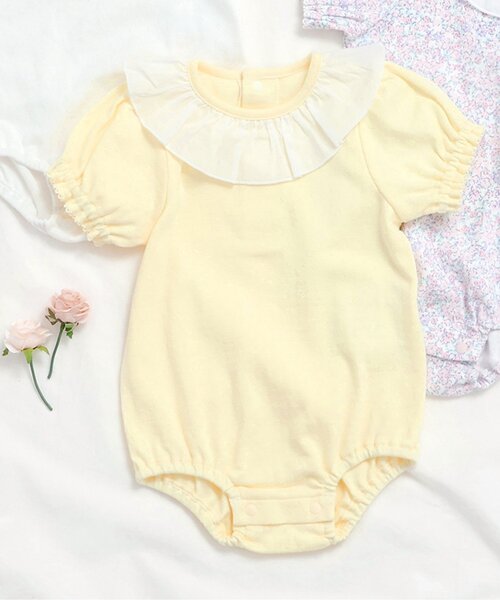 apres les cours(アプレレクール)のカバーオール・ロンパース「衿フリルボディースーツ」は、やさしいニュアンスのナチュラルなデザイン。