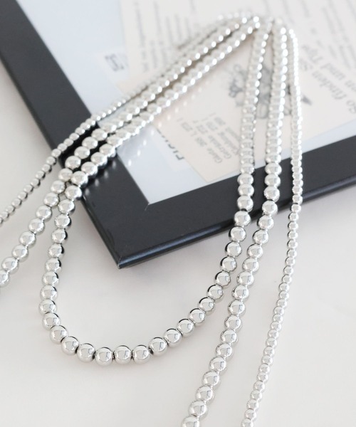 3連ですがボリューム感が出にくいネックレスです。春のデニムスタイルやジャケットスタイルにピッタリ!スウェットスタイルにプラスして春らしさも◎