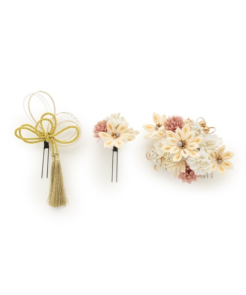 和装のヘアスタイルを彩る、花の髪飾り3点セットです。
