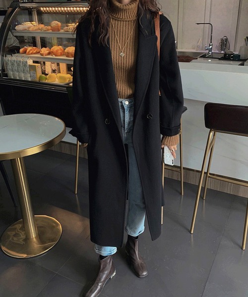 参考商品名:袖折り返しベルトセットロングチェスターコート