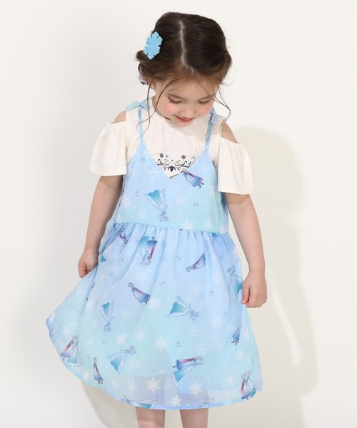 ヘルシーでキュートな肩開きTシャツとふわっとボリューム感のあるシフォンワンピースがまるでプリンセス気分♪