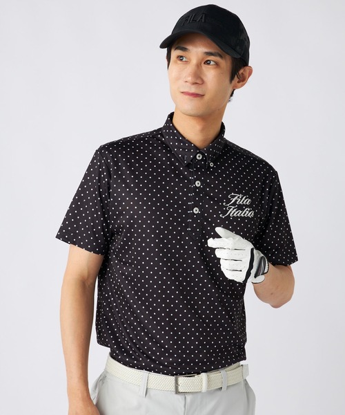 吸汗速乾&UVケアで夏に最適のポロシャツです。小さいドット総柄が夏らしいデザイン。ボタンダウンデザインで、ニットやジャケットとの相性も良く、きれいに衿がおさまります。吸汗速乾機能付きで暑い夏の季節でも快適にプレーできるアイテムです。