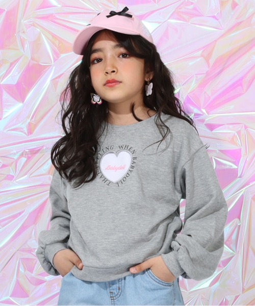 ハートのくりぬきがガーリーなトレーナーは、どっちも前仕様で2つのデザインが楽しめて着回し力抜群♪