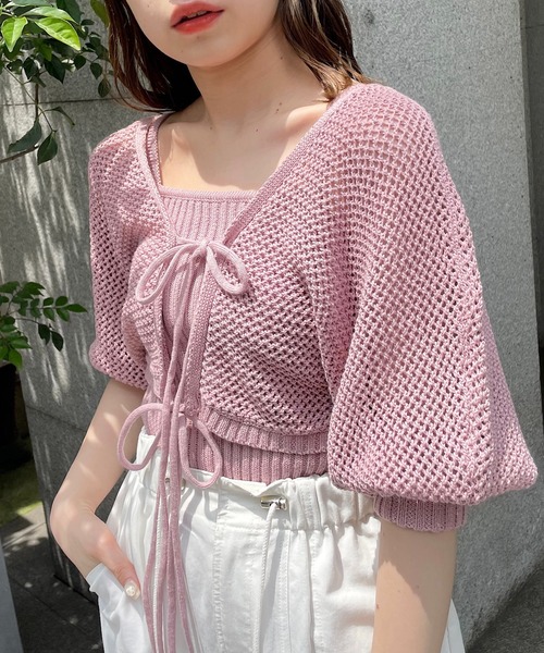 参考商品名:メッシュボレロカーディガン+リブキャミSET