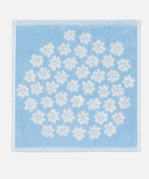 花束を意味するPuketti柄が華やかなミニタオル(26x26cm)。フォルムの異なるフラワーモチーフが並んだ愛らしいデザインが魅力。2トーンのさわやかなカラーリングも特徴。吊るすことも可能なロゴ入りタグがさりげないアクセント。吸水性に優れたタオル地で様々な場面で活躍するアイテムです。