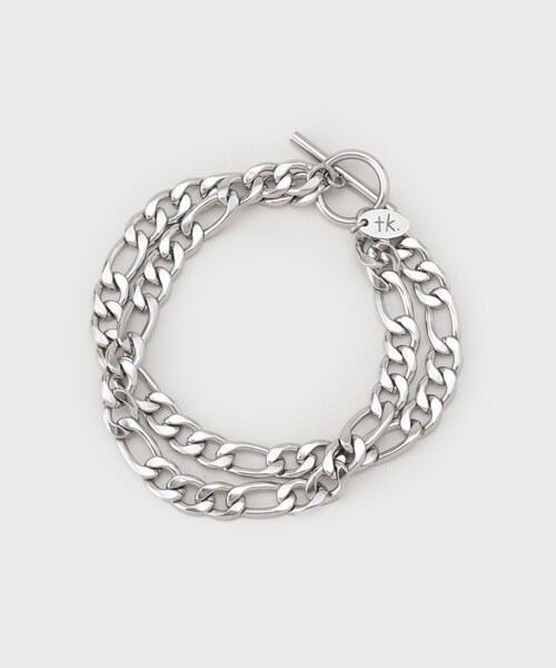 ステンレスチェーンをダブル使いしたデザイン性のあるブレスレット。