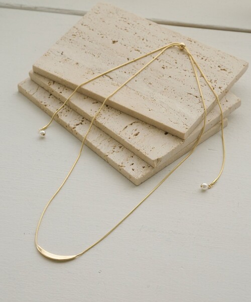 チェーンのエンドにパールモチーフがさりげなく配され、ネックの後ろにもポイントのあるネックレス。