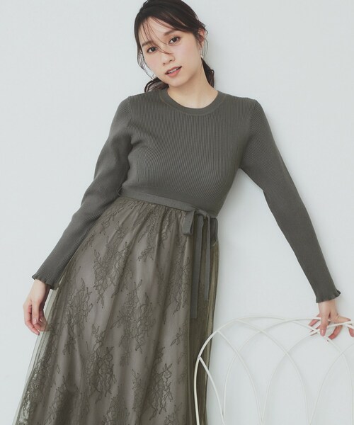 チュールレーススカートドッキングニットワンピース