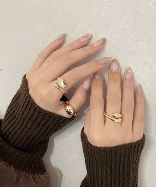 存在感のある立体的なデザインやこなれ感あるニュアンスデザインのリングがセットになったアイテム。