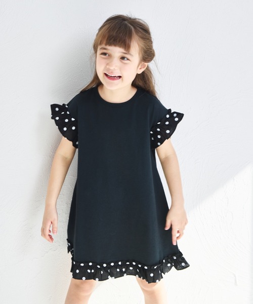 リボンや花柄などの総柄フリルがアクセントになった女の子らしい1枚です。
