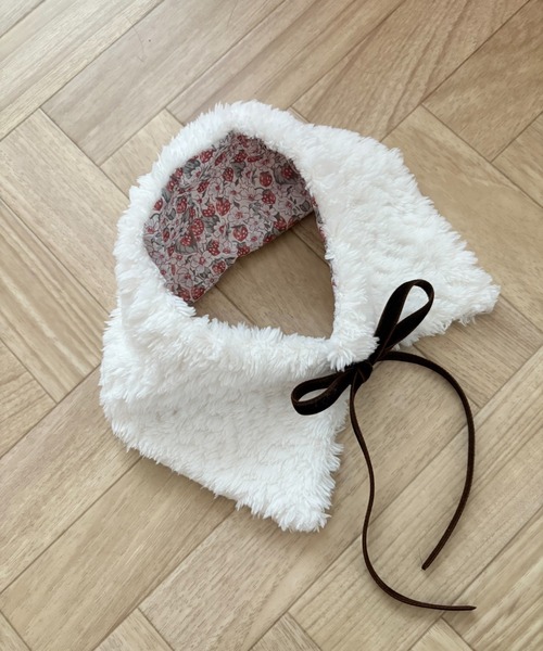 【普段のお洋服やアウターにプラスするだけで、首元に可愛さと温かみを与えてくれるボアティペット♡ボアは薄手で、冬はもちろん、秋や春先の肌寒い時期にも付けられる仕様です◎裏地はリバティのアシュテッド♡リバーシブルで着用いただけます♩】
