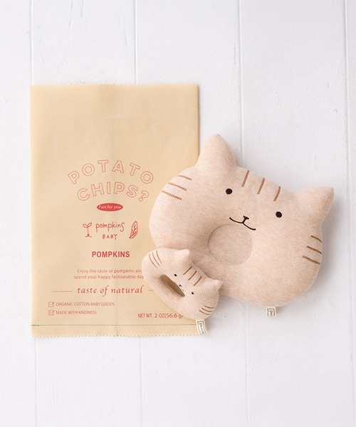 かわいい“にゃんこ”のキャラクターでベビー枕、ガラガラの2点セット。