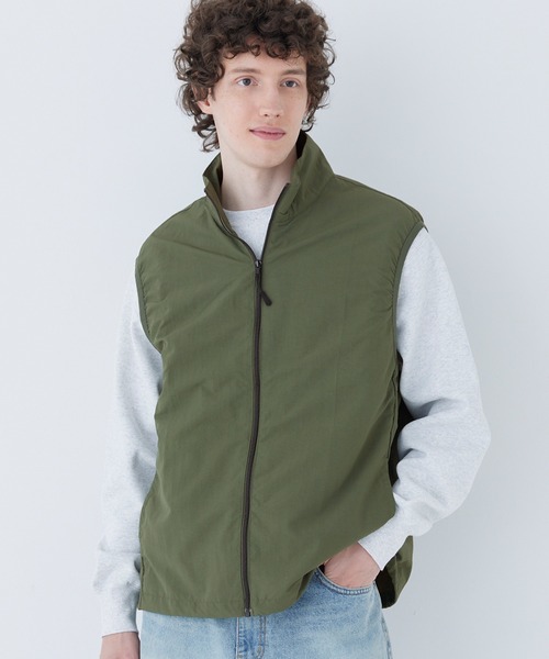 軽い着心地で、さらりのしたナイロン生地のスタンドネックベスト。