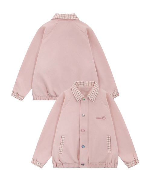 定番のコーチジャケットデザインに、チェック柄の襟や袖裾がアクセントをプラス。