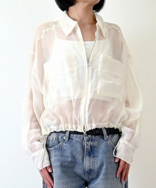 シアーポプリンの素材感が魅力のシャツジャケット。これ一枚で今季らしいこなれ感を演出します。