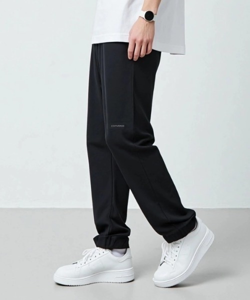 スッキリしたテーパードシルエット、膝切り替えのスポーティーで動きやすいデザインです。左足にコンバースロゴが目を惹くアイテムです。ウエスト部分は、ゴム+紐もついてるので、サイズの微調整も可能。裾はリブ仕様で、足元スッキリスニーカーとの相性抜群です。カラーは使いやすいブラック、グレー、ネイビーの3色展開。