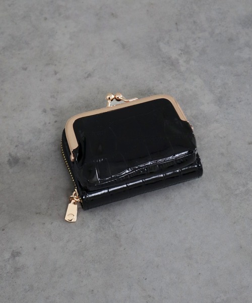 【 ammy. / エイミードット 】 2way クロコダイル デザイン ウォレット / がま口 コインケース / カードケース