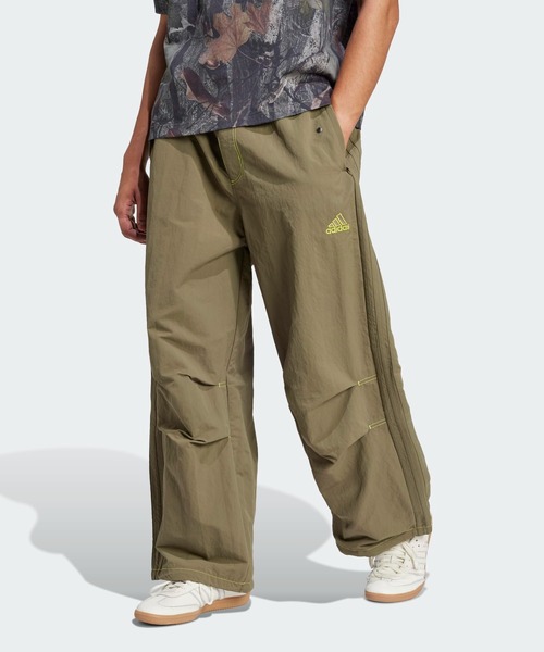 【アディダス公式ショップ】裾にバンジーコードを付けた、ルーズフィットパンツ。心ゆくまでリラックスしたい日にふさわしい、パラシュートパンツ。滑らかなウーブン生地を使い、ルーズフィットのリラックスできるシルエットに作り上げているから、24時間ずっと快適なはき心地が続く。
