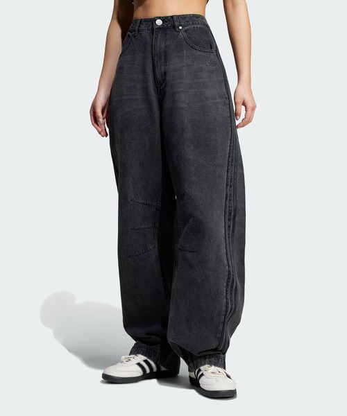 【アディダス公式ショップ】リサイクル素材を一部使用した、ウォッシュドデニムジーンズ。ウォッシュ加工をかけて近未来的なバイブスをプラスした、レトロなカラーグラデーションが魅力のパンツ。ゆとりのある膝まわりから足首に向かって緩やかに絞った、曲線を描くシルエットになっている。ウエストからフロントの裾まで伸びるスリーストライプス入り。
