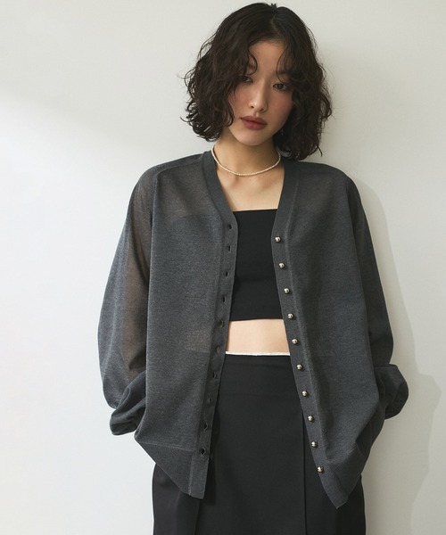 程よくゆったりとしたサイジングが心地よい、透け感のある浅めのVネックカーディガン。
