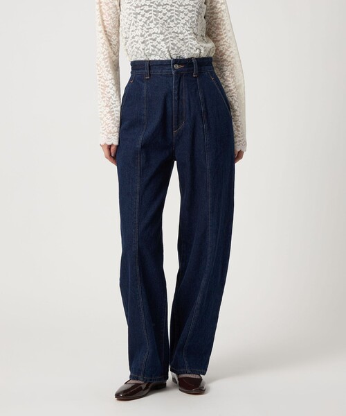 もも周りに程よくゆとりを持たせながら、裾に向かって緩やかにテーパードさせた立体的なシルエットが存在感のある樽型のデニムパンツ。