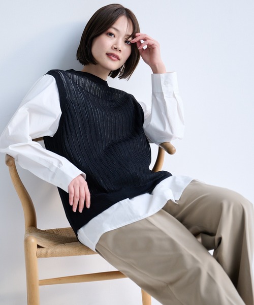 シャツとニットがセットになった便利なレイヤードアイテム。このセットだけで完成度の高いレイヤードスタイルが楽しめます。それぞれ単品でも着用できるため、幅広いコーディネートに活躍。ニットはさらりとした肌触りで快適な着心地。薄手のニット素材なので春先から秋口まで、ロングシーズンご着用いただけます。シャツは綿100%のブロード素材を使用し、ナチュラルな風合いが魅力。カジュアルにもきれいめにも合わせやすく、普段使いからお出かけまで幅広く活躍する万能なアイテムです。