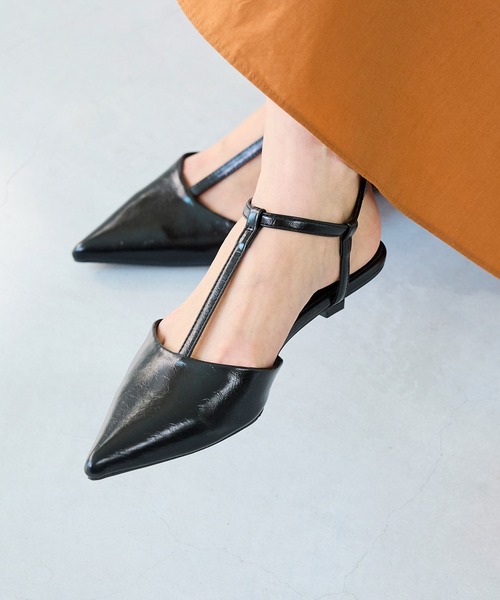 1.履くだけでおしゃれ&華奢みえ!Tストラップ×ポインテッドトゥ