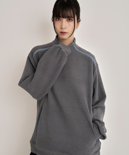 肩から袖にかけて施されたカラージップがアクセントとなり、モードな印象をプラス。ジップを開けることでレイヤードスタイルも楽しめ、気温や気分に応じて着こなしをアレンジ可能です。