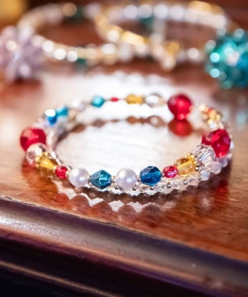煌めくチェコガラスビーズを贅沢にあしらったブレスレット。