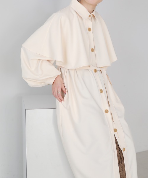 キーワード:ステンカラーコート コート レディース フリル ロング丈 秋 冬