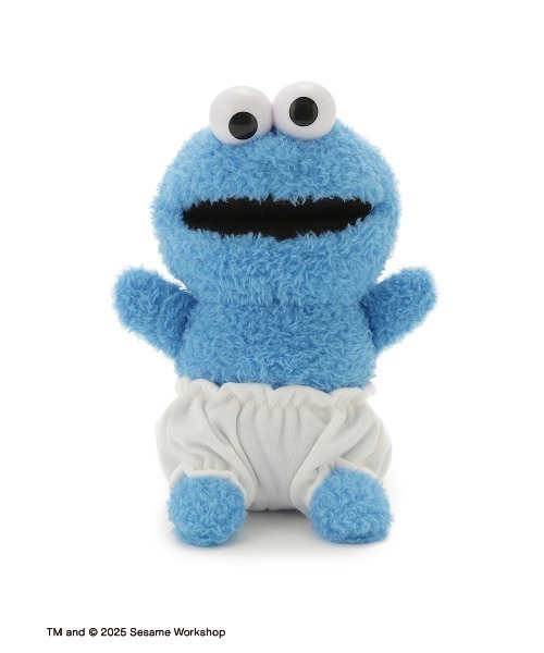 赤ちゃんサイズになったクッキーモンスターのぬいぐるみ。