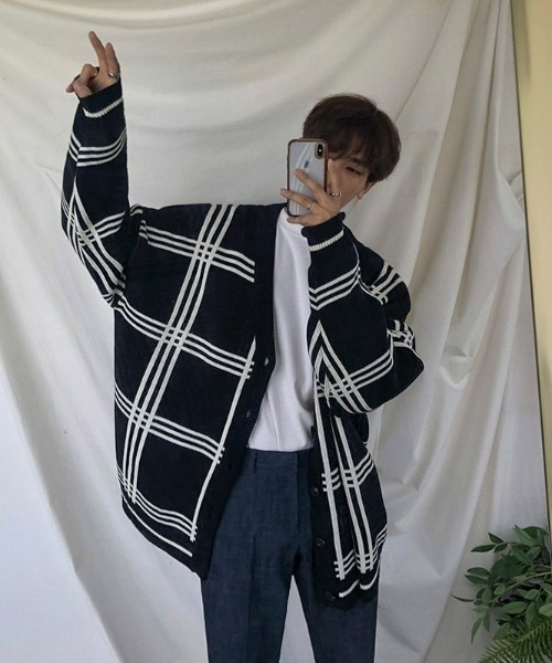 参考商品名:チェック柄オーバーサイズカーディガン / ウィンドーペンカーディガン