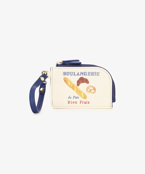 シボ感のある合皮にフランスパンやクロワッサンなどがプリントされています。背面にはチェック柄を施しかわいらしさをアップ。きらりと輝くゴールドのパーツ使いもポイントです。